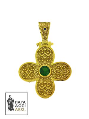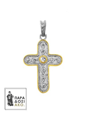 • Βυζαντινός ασημένιος σταυρός με ζιργκόν πέτρα, από ασήμι 925 και ρόδιο με χρυσό περίγραμμα